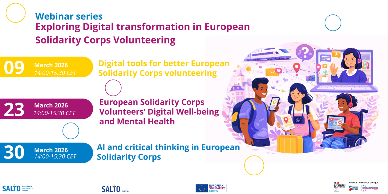 Partecipa a Digital Transformation in European Solidarity Corps Volunteering, la serie di webinar formativi gratuiti e fruibili online dedicati a capire come la digitalizzazione sta cambiando il modo di fare volontariato, affrontando opportunità e sfide!